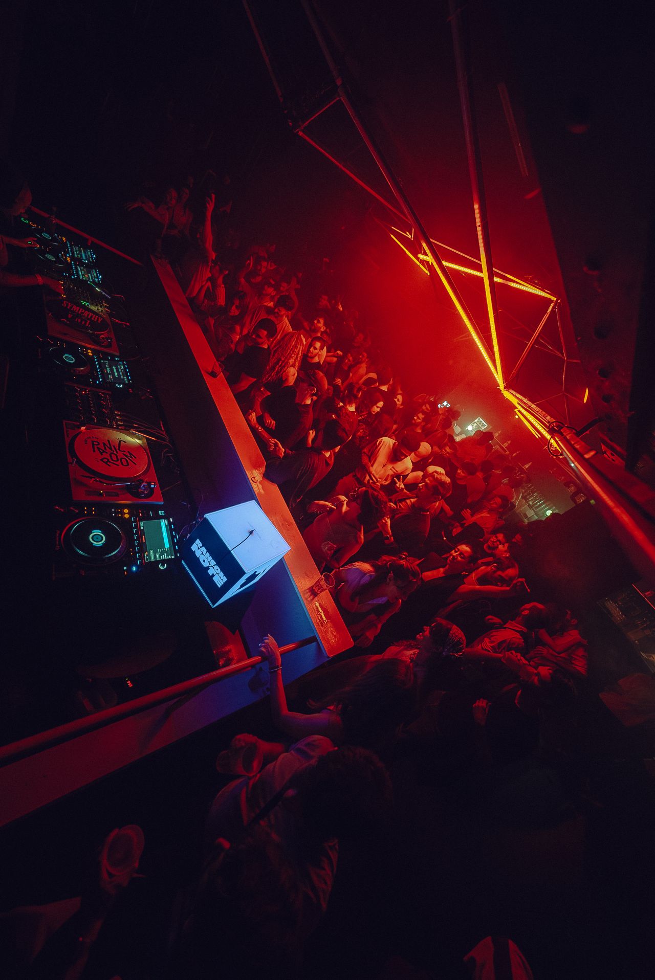 La cabine, désormais au niveau du public, favorise une relation plus directe entre les DJs et la foule.