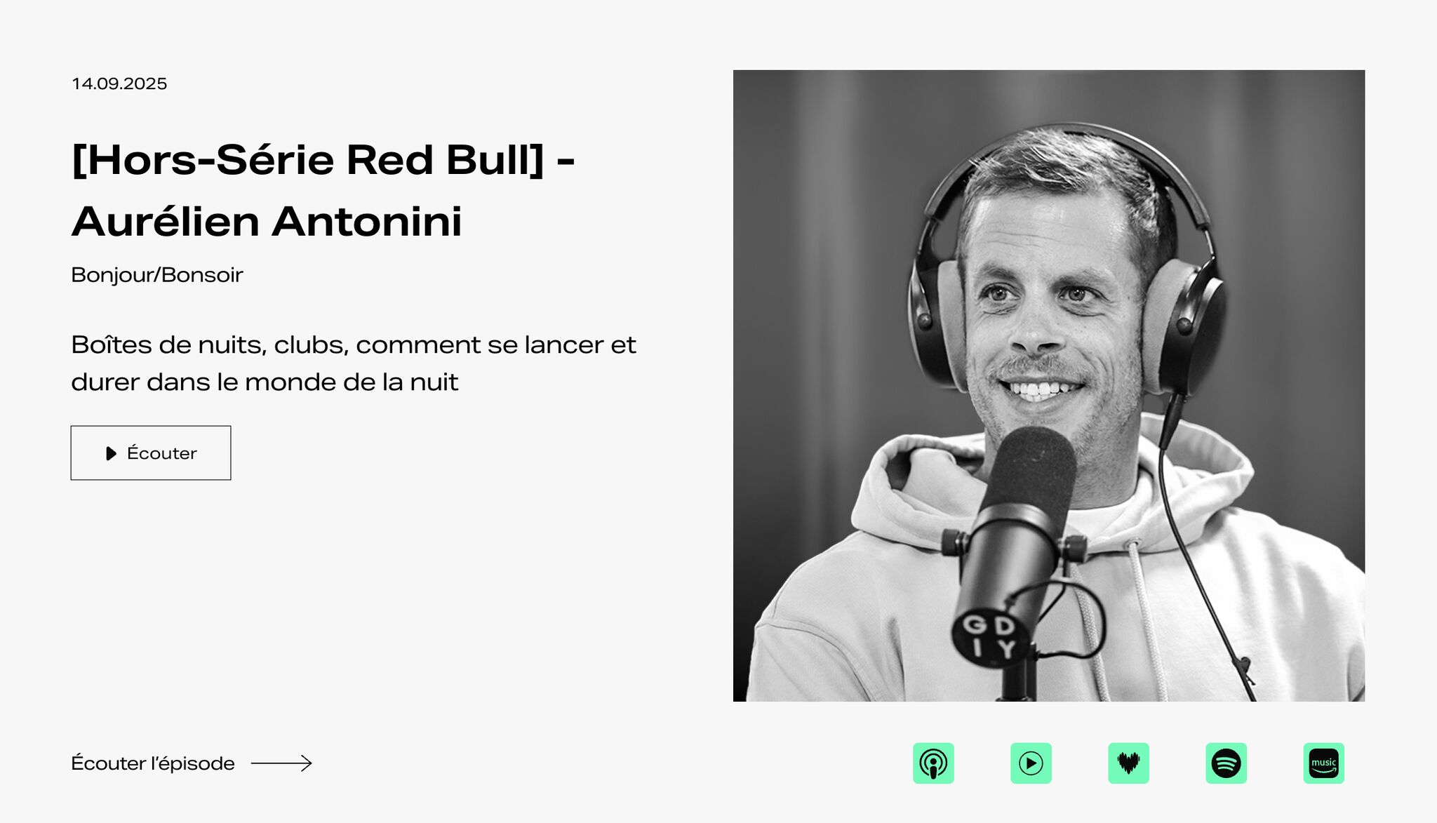 Dans cet épisode du podcast Génération Do It Yourself, Aurelien Antonini, co-fondateur du groupe Bonjour/Bonsoir et président du syndicat Culture Nuit, prend la parole !