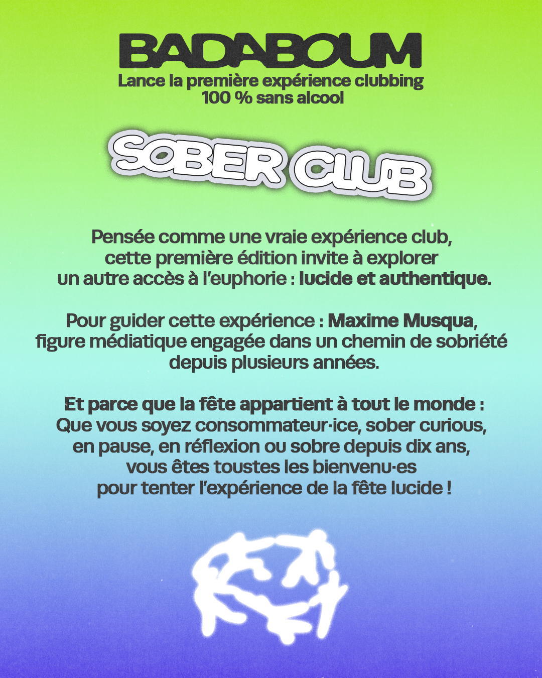 À nos côtés sur ce projet : Maxime Musqua figure médiatique engagée sur le chemin de la sobriété depuis plusieurs années et auteur du livre « Je n’aurai plus besoin d’alcool pour danser » (Éditions Robert Laffont, janvier 2025).